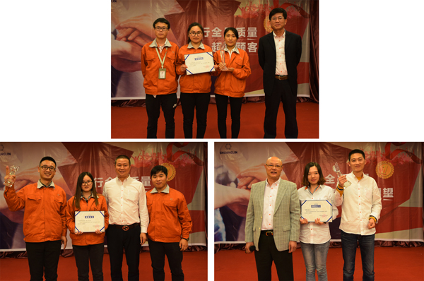最终进入优秀单位及团队颁奖环节,各位领导分别为“质量知识竞赛”、“质量优秀成果发表奖”、“质量月活动的最佳组织奖”进行颁奖。这些荣誉是对大家这一阶段以来工作结果最好的认可。